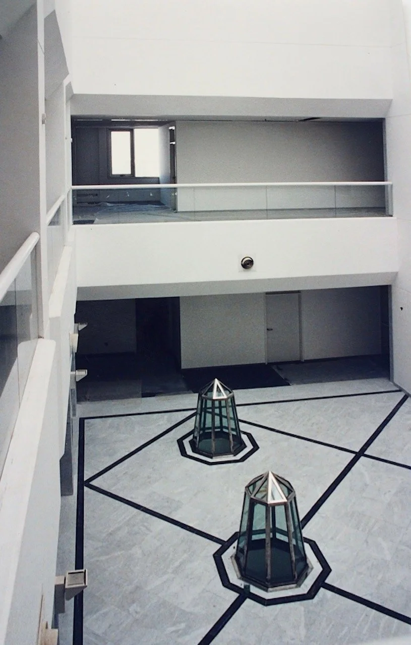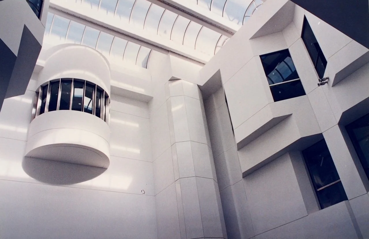 Developed around a central atrium housing the main Banking Hall and featuring an expansive skylight and panoramic lifts
